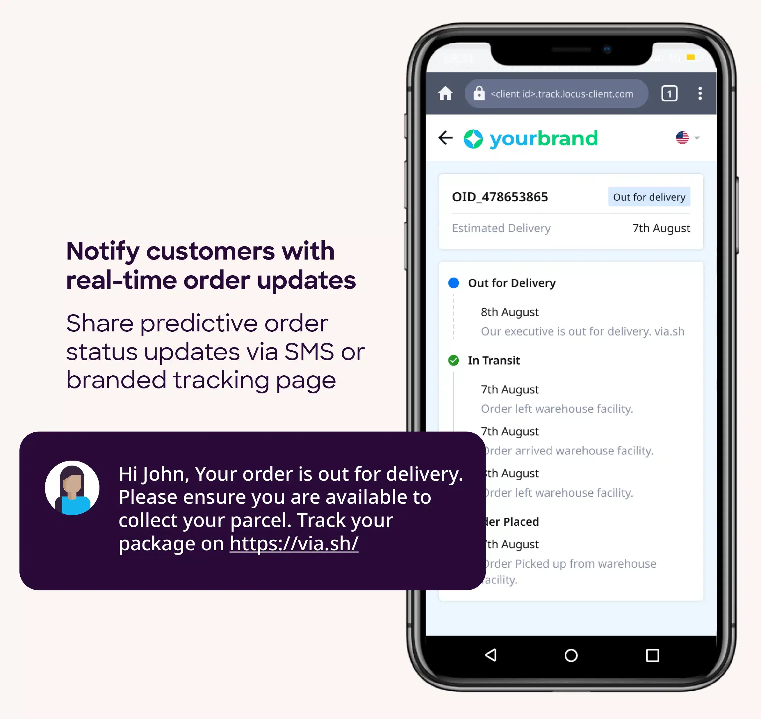 Branded tracking experience for customers: Imagine your customer orders from you and then they receive a message from your carrier partner without any context on what the message is about. That’s bad customer experience.